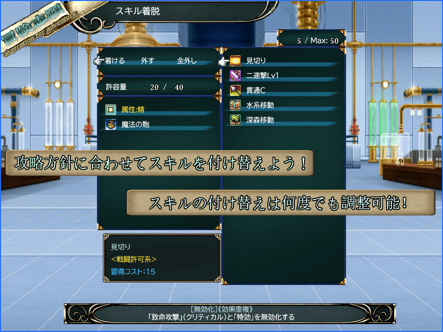 個人スキルは、一定の許容量に応じて任意に付け替えが可能です。