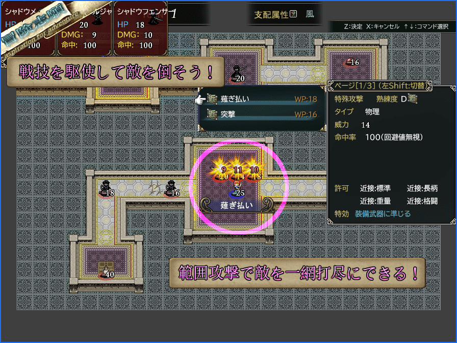 戦技には範囲に影響を及ぼしたり、状態異常を付与したりする効果を持つものがあり、